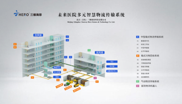 终于,在2020年,由三维海容承建的以中型箱式物流传输系统为主,气动物流传输系统为辅的智慧物流解决方案在河北医大一正式落地运行。