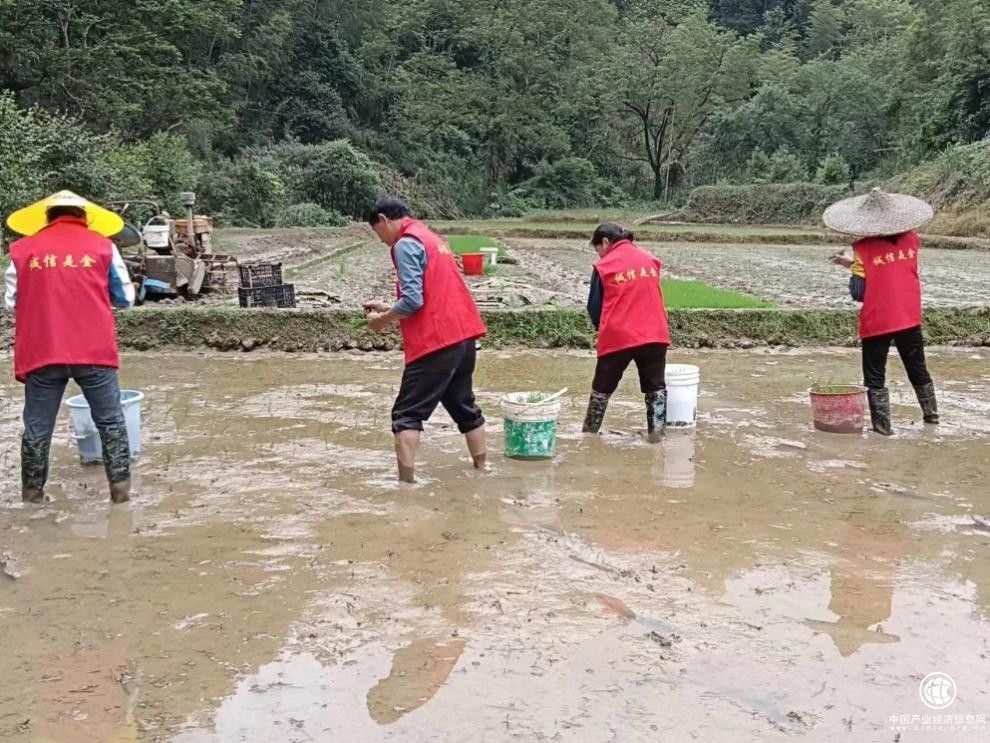 水稻插秧时期,志愿者们利用休息日帮助困难零售户拔秧苗、捆秧苗、运秧苗,抢插秧田。