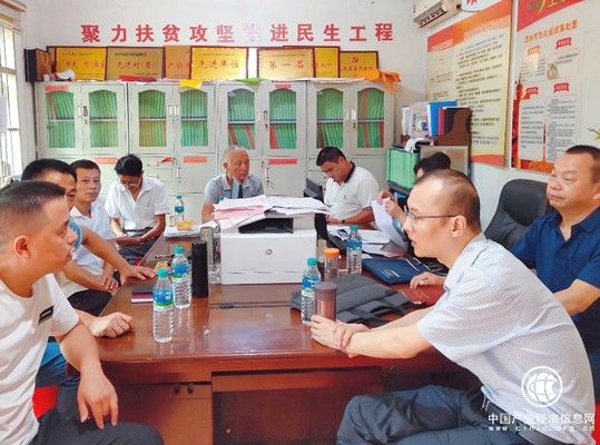 广信区烟草专卖局主要负责人(右二)与周延星(右一)到苎圳村走访调研会商