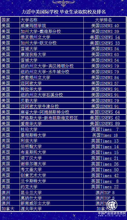 力迈学校还有许多毕业生收到多所国外大学的录取通知书,尚未选定最终就读院校;
