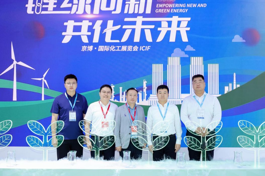 展台开幕仪式上,京博石化董事长王耀伟、总经理邹雄,京博中聚总经理刘晓,京博石化化工品营销中心总经理蔡鹏飞,京博思达睿新材料总经理徐刚共同启动“链绿之树”,寓意企业扎根绿色产业链、迈向可持续未来的战略决心。