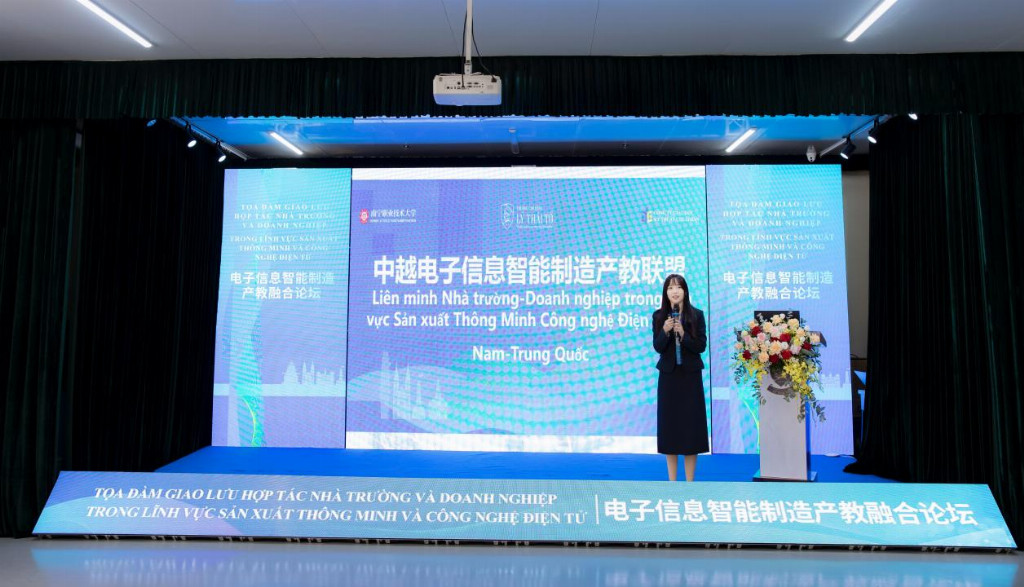 11月25日,电子信息智能制造产教融合论坛在越南北宁省慈山市越南李太祖学院成功举办。本次论坛由南宁职业技术大学、越南李太祖学院、中国—越南电子信息现代工匠学院及巨大教育科技集团联合主办,以“深化越中产教融合,共筑高素质工匠人才新通道”为主题,吸引中越双方政府、院校及企业代表70余人参与。