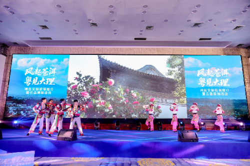 活动在极具民族风情的《八角鼓与霸王鞭》《蝴蝶泉边》歌舞表演中拉开帷幕。大理州民族文化工作团的表演艺术家们用欢快的节奏和优美的舞姿,生动展现了大理"风花雪月"的诗意生活。随后播放的大理文旅专题宣传片,带领现场嘉宾"云游"苍洱胜境,感受大理独特的自然风光和人文魅力。
