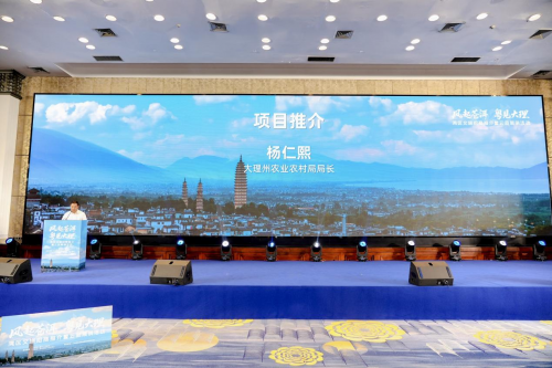 随后,大理各县区领导依次登台推介。石怀瑰宝,文脉流芳,大理市人民政府王剑市长作主旨推介,以"风花雪月"的生态人文优势为基底,重点打造"环洱海旅居圈"七大产品体系,建设集数字游民社区、康养度假、文化艺术创作、户外运动于一体的世界级旅居目的地。