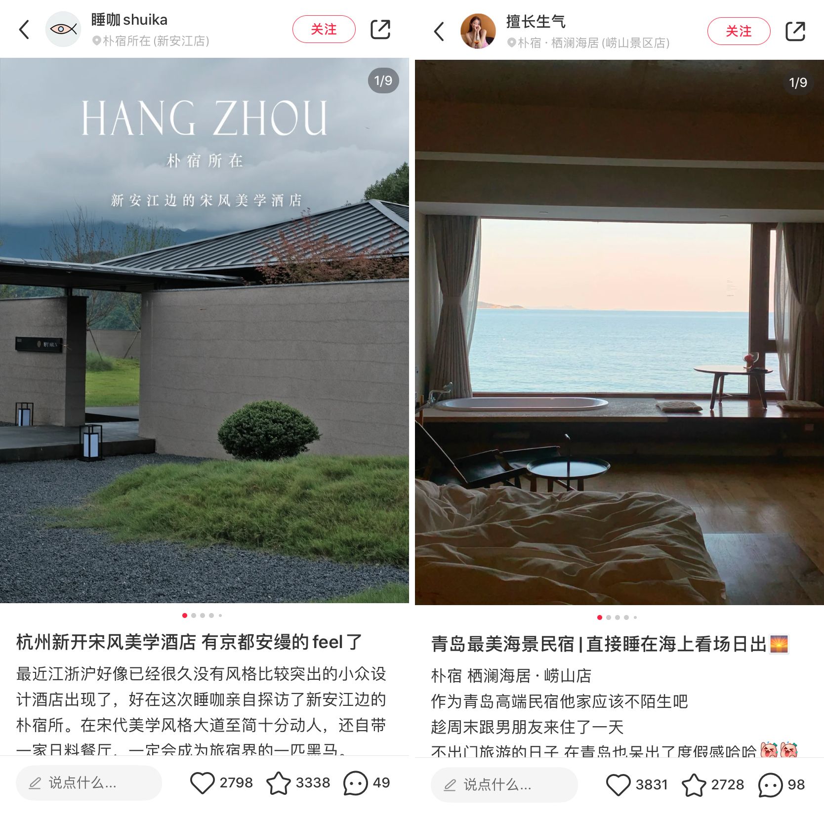 随着自媒体兴起,朴宿迅速布局公众号、小红书、抖音等平台,持续输出高质量图文与视频内容,形成独特的品牌视觉语言与情感连接,累计收获小红书推荐笔记超1万+,成为“行走的度假种草机”。