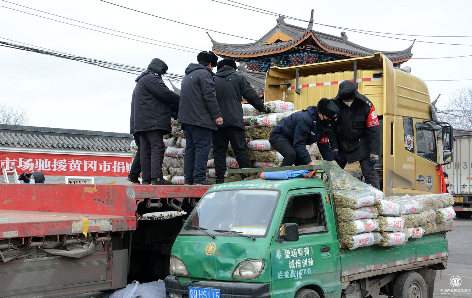 人民网北京2月23日电(张桂贵)22日上午,北京新发地市场强农门内的工会服务站门前,一场捐助行动正在热火朝天地进行。来自该市场的商户们把捐助的一小车一小车各种蔬菜汇聚到这里,统一装上大型货车后发往湖北往黄冈,而这满满的一车带着全体“新农人”真情和祝福的蔬菜也将在24小时后被送上黄冈市民的餐桌。
