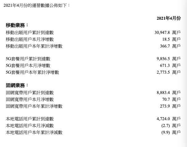 在移动业务方面,中国联通移动出账用户4月净增18.5万户,累计达3.09亿户。其中5G套餐用户4月净增671.3万户,累计达到9856.5万户。