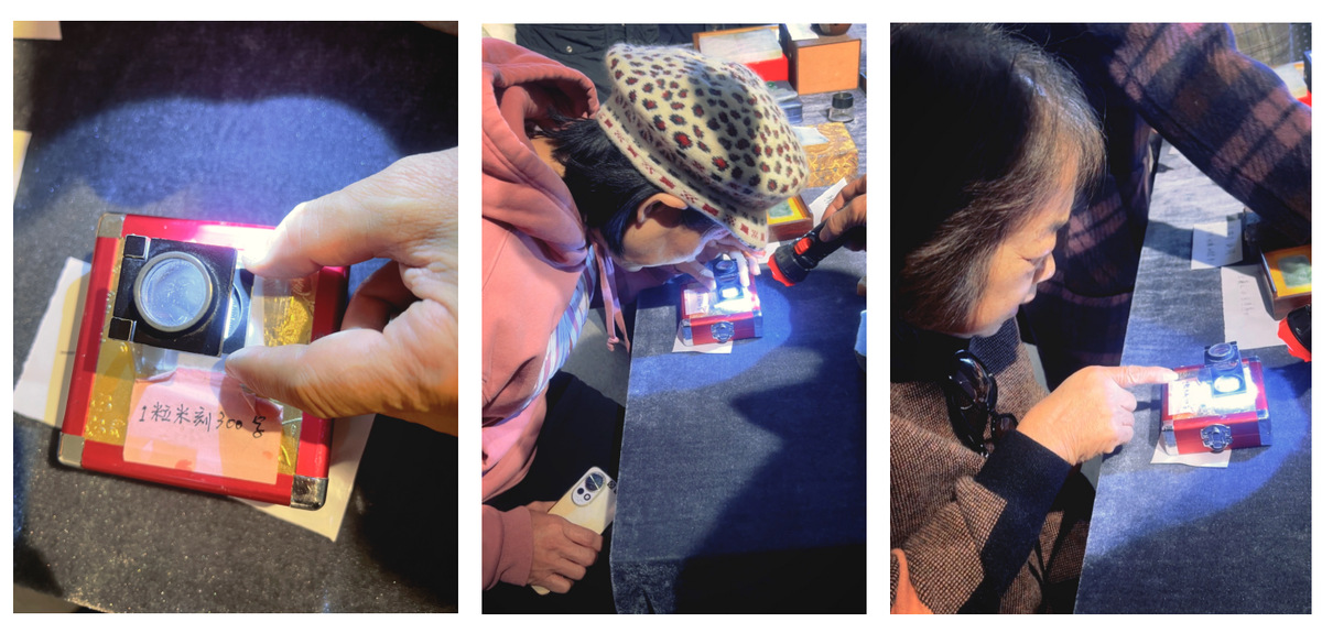 最引人注目的,是广东省玉石雕刻大师郑少山创作的微雕作品——“一粒米刻300字”。透过放大镜,米粒大小的象牙有机玻璃上,密密麻麻却工整清晰的汉字令围观者连连称奇。“太厉害了!这得是多稳的手、多尖的刀?”市民陈先生举着手机拍摄了近十分钟,仍觉意犹未尽。现场多位观众表示,将从开幕日起多次前来观展,“一次根本看不够这些‘宝贝’”。