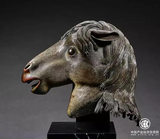 圆明园马首铜像,为清代圆明园长春园西洋楼建筑群海晏堂外十二生肖兽首喷泉主要构件之一,是一件非凡的中国古代艺术品。1860年英法联军侵入北京,圆明园惨遭劫掠焚毁,马首铜像与其他11尊兽首铜像一同流失海外。