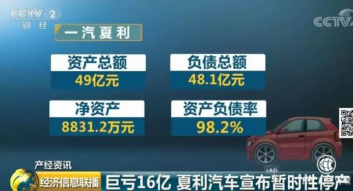一汽夏利资产总额为49亿元,同时负债总额为48.1亿元,净资产仅有8831.2万元,资产负债率高达98.2%。连续亏损,几近资不抵债的夏利,目前已宣布暂时性停产。这意味着,这个曾经在汽车行业呼风唤雨,风靡全国,连续18年占据销量冠军宝座的老品牌,正在逐渐退出市场。