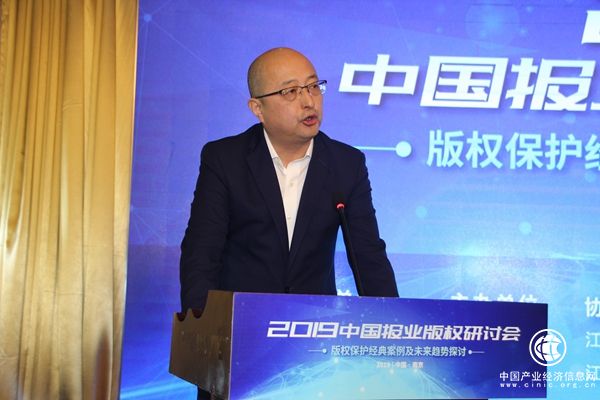中国报业协会对外合作部钱鹏飞宣读2019中国报业版权研讨会倡议书 (摄影 陈惠英)