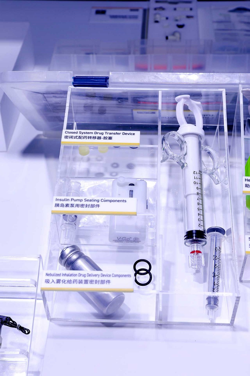 • 在密封产品方面,派克汉尼汾展示了面向胰岛素泵、真空采血塞、留置针等临床应用场景的本地化解决方案。这些方案采用专属医用高分子橡胶材料,能够更精准匹配不同应用需求,兼具稳定的理化性能与良好的生物相容性,并采用医疗十万级洁净包装,满足医疗行业对安全性与合规性的严格要求。其中,适用于微创穿刺器的密封瓣膜成为现场关注焦点。该产品具有较强抗撕裂性能和孔位自愈能力,可在器械进出过程中保持良好的动态密封效果,有助于减少漏气漏液,维持气腹稳定和手术视野清晰,为微创手术提供更可靠保障。