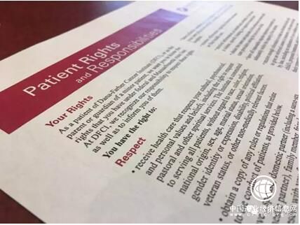 在丹娜法伯癌症研究院,随处可以拿到这样一张双面打印的A4纸,这是医院在告知患者患者权利与义务。