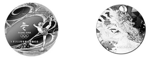 该银章正面为花样滑冰运动员在冰面上滑行的痕迹所构成的“2022”字样,优雅唯美。背面为自由滑雪运动员高速滑行的瞬间,飞扬的起的白雪,展现出冬奥会的力与美。