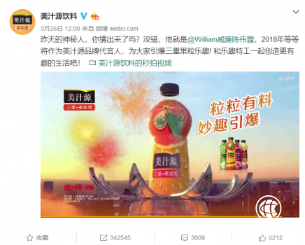 他是《老九门》里霸气十足的张老佛爷,他是《古剑奇谭》里成熟稳重的大师兄,他是《热血街舞团》里光芒四射的导师。不管是唱歌、跳舞或者演戏,多栖发展的陈伟霆一直以阳光、帅气的形象出现在荧幕之中,如今更是携手美汁源,以全新代言人的身份为消费者带来更为健康美味的产品。