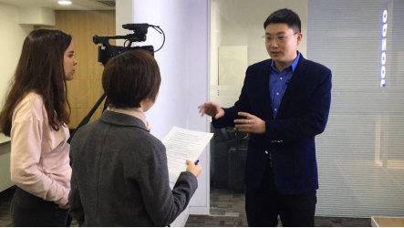汉柏科技常务副总裁邱召强接受朝日电视台采访