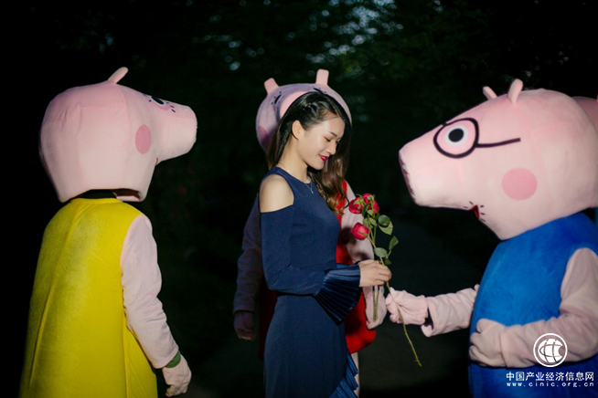 欢乐的小猪佩奇四口找到了人群中的女主(胡女士),并将一只真爱玫瑰送到她手上,簇拥了惊喜的她来到了男主(桑先生)面前!