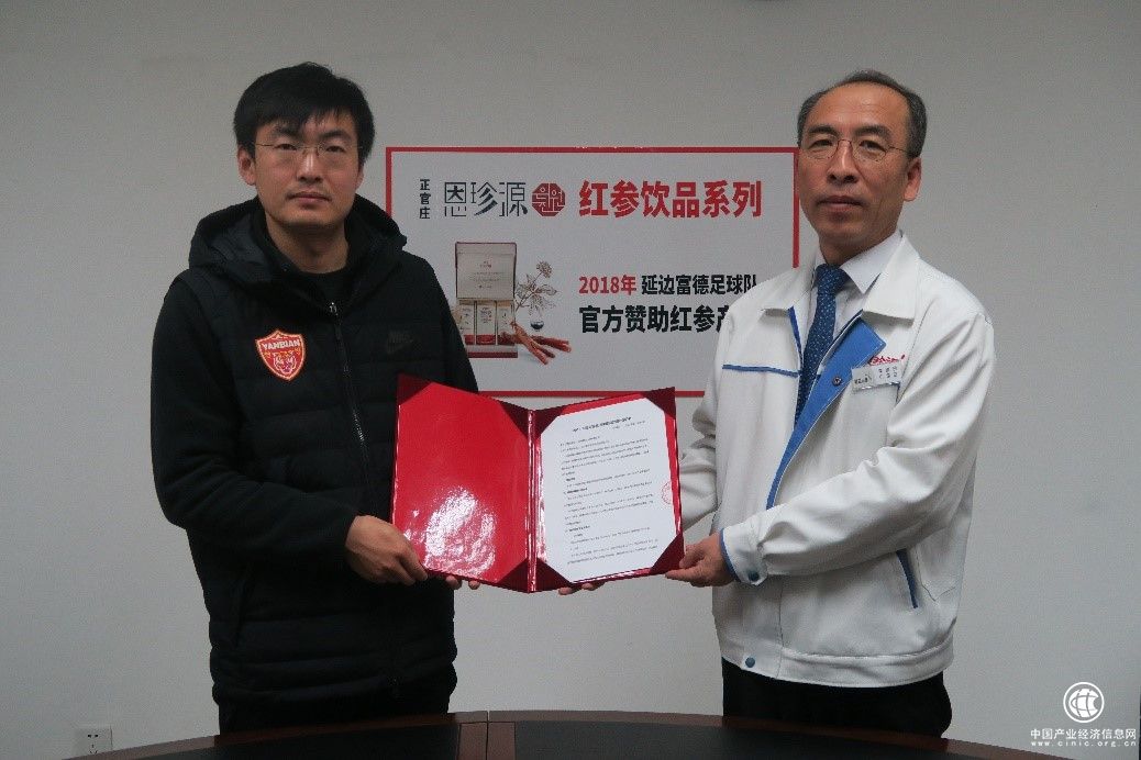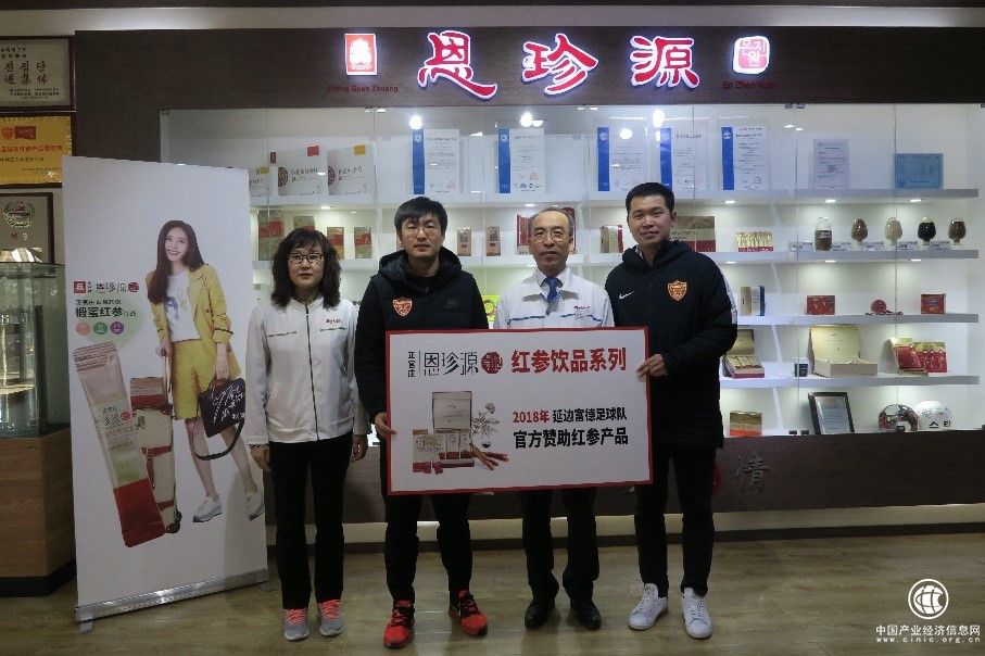 4月4日上午,延边富德足球俱乐部与吉林韩正人参有限公司在延吉市工业园区恩珍源厂区举行了赞助的交接仪式,首批价值30万人民币的恩珍源红参饮品送达到延边富德队的训练基地。