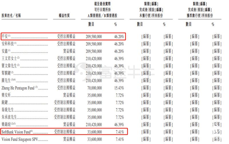 中国平安全资子公司 软银也在投资人之列