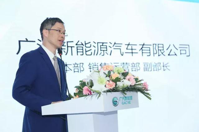 广汽新能源汽车有限公司销售本部销售运营部副部长潘镜池介绍传祺GE3时,面带微笑,信心满满。潘部长说:传祺GE3作为纯电平台的优质产品,不仅拥有高端的内在品质,更拥有秀外慧中的颜值。