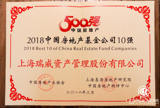 近日,在北京盛大举行的“2018中国房地产开发企业500强测评成果发布会”上,瑞威资本获“2018年中国房地产基金公司10强”殊荣,并荣列第六位。回顾2017年的“中国房地产基金公司10强”会议上,瑞威资本荣列第八位,而今年次再次晋升两位,位列第六。