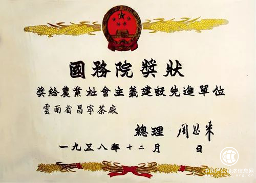 同年12月,周恩来总理将签名奖状颁给该厂。