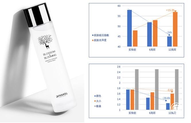 2007年,全球权威皮肤科学杂志《Journal of Drugs in Dermatology》发布了以Sylvie Talbourdet领衔的11位医学专家对山花精的临床研究结果*,证明了山花精有效抑制、降低黑色素的生成与活性,明显 润亮肤色、清除自由基的能力。研究为期90天,以22-55岁脸色暗黄、有黑斑的亚洲女性为测试对象。经过12周后,发现受测对象的皮肤暗沉度降低了24%,皮肤光泽度则提升了15.3%,展现了惊人的亮白功效,且未发现任何过敏、刺激等现象。与此对应的,面部黑斑的颜色和大小也出现了显著的降低,斑痕色度减淡了28.6%,大小则降低了8.6%。