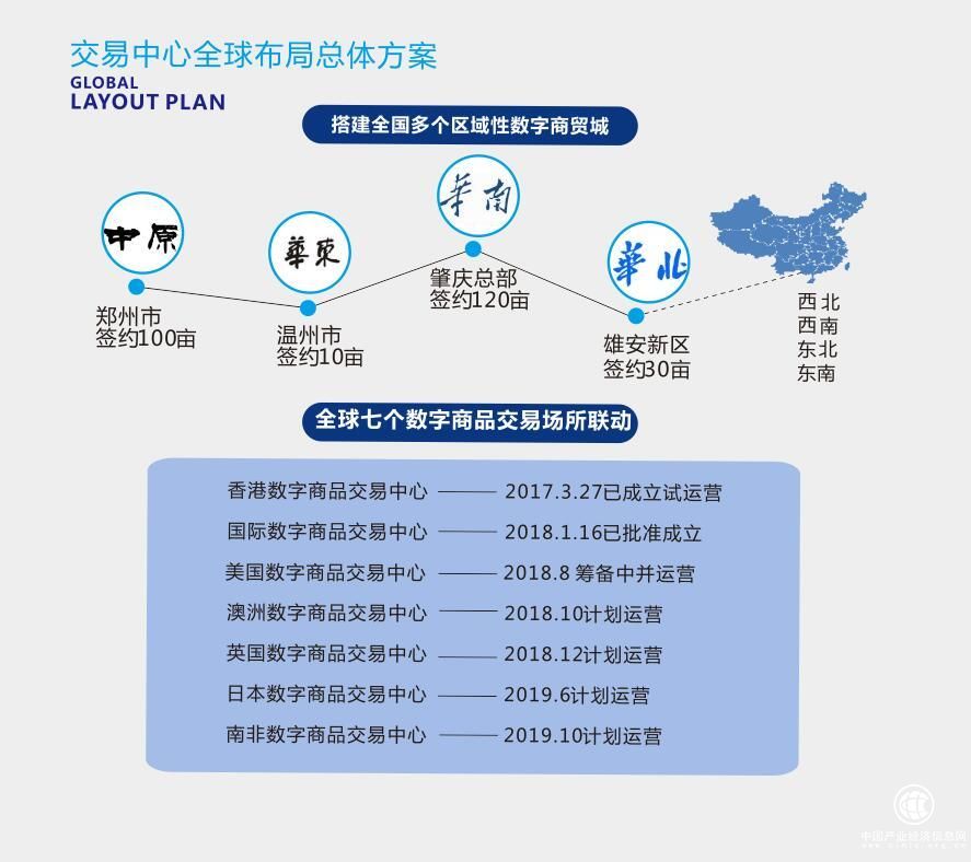 国际数字商品交易中心成立于2018年1月,总部位于粤港澳大湾区肇庆新区,注册资本5000万元人民币,是经国家和地方相关部门核准成立的独立法人企业。经营主业为高科技中小企业数字商品的全球首发、全球贸易、跨境零售和国内外IPO做市提供一站式综合服务的数字经济平台总部企业。