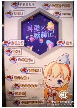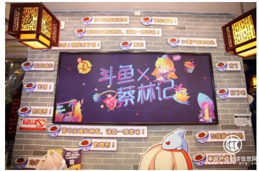 蔡林记的门店装上了“斗鱼x蔡林记”的霓虹灯牌,直观且醒目,让这两个独立品牌的受众突然产生了交集。店铺之内处处都是斗鱼风格的主题元素,从大厅的屏风,到主题热干面都是重新设计的,影壁上也轮番播放此次斗鱼直播节的相关视频。餐厅菜单上还添加了游戏主播时常使用的“黑话”,对熟悉的消费者来说有种亲切感,自豪感,而对不熟悉的人来说是新鲜与好奇,跃跃欲试。