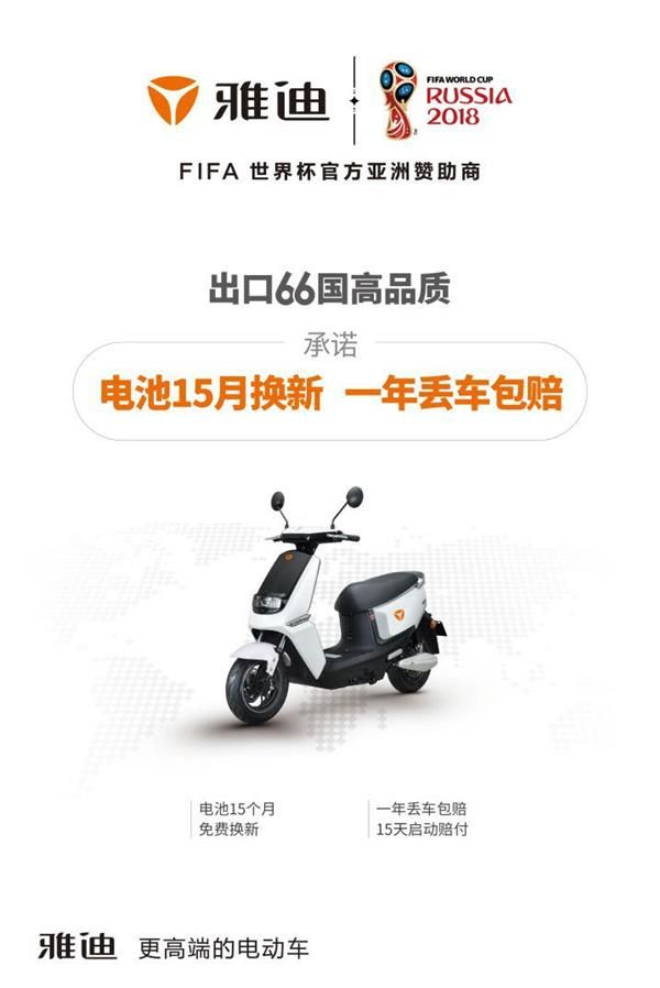 出口66国高品质雅迪:电池15个月换新,一年丢车包赔