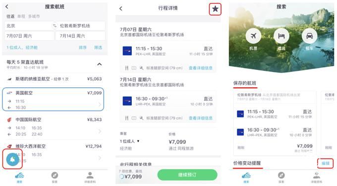最贴心的管家服务 保存航班 价格变动提醒 不错过任何优惠
