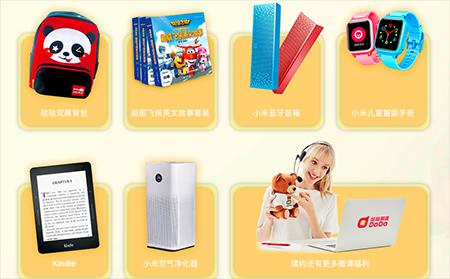 据悉,此次品牌焕新活动同样旨在回馈广大用户。自5月初至5月31日期间,用户购买哒哒英语课程则可享受五月购课专享福利,具体内容为:活动期间,用户购课实际支付金额满5088元,可使用618元优惠券;购课实际支付金额满10328元,可使用1188元优惠券;购课实际支付金额满20680元,可使用2488元优惠券;购课实际支付金额满36888元,可使用4388元优惠券。同时,购课用户还有机会获得哒哒双肩背包、超级飞侠英文故事套装、小米蓝牙音箱、小米儿童智能手表、kindle、小米空气净化器等优质好礼。丰厚的奖品让用户切实感受到了哒哒英语的实惠。