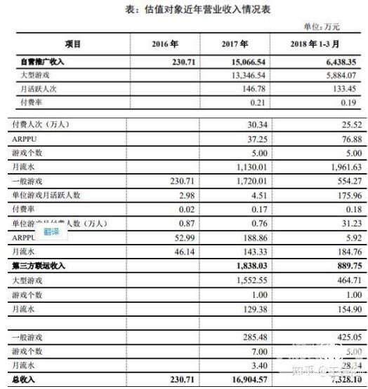 报告显示,根据对鲸旗天下的经营状况估计和收益法估值,鲸旗天下基准 2018 年 3 月 31 日的股东全部权益价值估值 91,444.13 万元,2018年预估营收4.36亿。