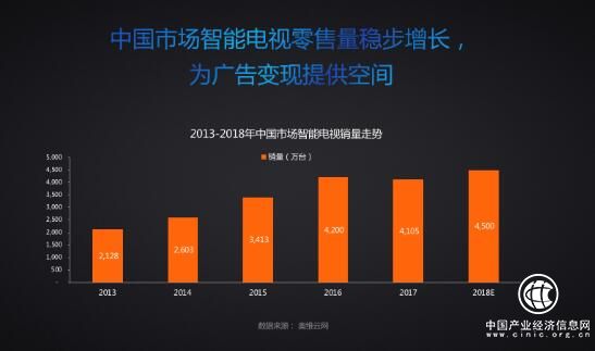 史总表示,在消费升级的驱动下,中国市场智能电视销量在持续扩张。仅是在中国市场,2017年已经达到了4105万的销售规模,预计到2018年可以达到4500万台。与此同时,大屏端广告市场规模也迎来了一个爆发式的增长。根据行业统计数据显示,传统电视端的广告收入规模,在2015年到2019年有一个比较平稳的下降趋势,而OTT端则是呈现逐渐增长的趋势。