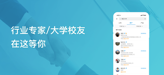 用户可以设置自己的教育、工作、生活经历,「找到」APP会根据这些信息为用户智能匹配自己的老同学、前同事,或者校友等人脉。之后用户可以直接与目标对象加好友或者发私信。不仅如此,「找到」APP还可以为用户提供目标对象的公司信息、职场经历、联系方式以及相关同事和朋友信息,进而实现二度人脉拓展。利用 “通讯录雷达”功能,「找到」APP通过裂变式人脉拓展,为用户构建完整的职场人脉网络。