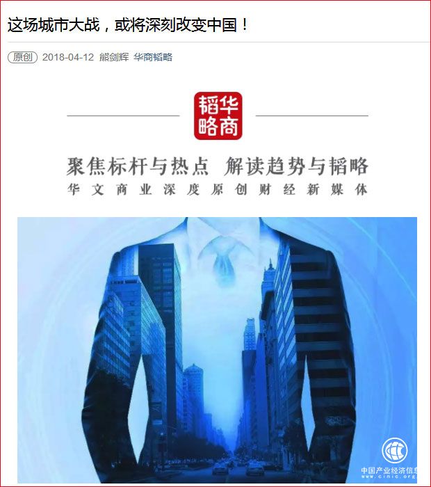 4月初,知名财经自媒体“华商韬略”一篇《这场城市大战,或将深刻改变中国》的文章刷屏朋友圈,并且被包括《人民日报》在内众多媒体跟进、转载或翻版,持续引爆关注话题。