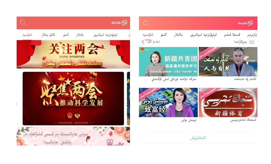 另一方面,阔孜纳克(Koznak)紧跟时代步伐,是本地群众获取生活信息,与国家文化、国际接轨的有效途径之一。阔孜纳克(Koznak)坚持弘扬社会主义核心价值观、传递祖国的盛世凯歌,第一时间以视频的形式传达国家会议的精神、对国内重大事件进行跟进。如在两会期间,阔孜纳克(Koznak)设立专门的栏目对两会议程相关的信息及时更新,让新疆民语用户及时把握祖国政策的前沿动态,了解自己关心的民生问题,广受用户好评。