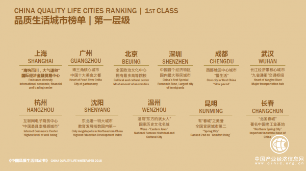 从消费者视角出发,中国各大城市的生活品质如何?报告还发布了《中国品质生活城市榜单》。