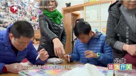 你会看到满头白发的老母亲领着她38岁的儿子,围坐在一起,做着同样的简单手工。