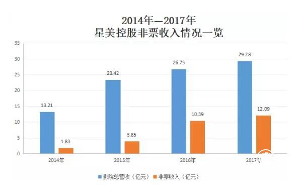 星美控股近年来重点发展的非票房收入,在业绩上得到了良好体现,从2014年非票房业务收入占比不足15%,到2017年的40%以上,让未来的发展更加自信和从容。