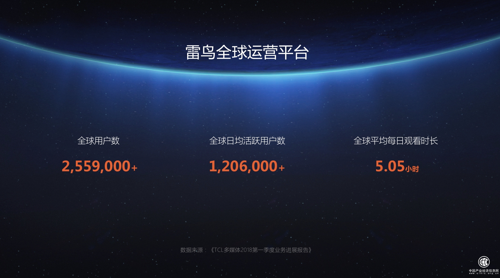 基于TCL终端多年的布局,雷鸟电视作为TCL电视运营平台,目前已经积累了2559万的用户,月均活跃用户1206万,平均日观看时长5.05小时。