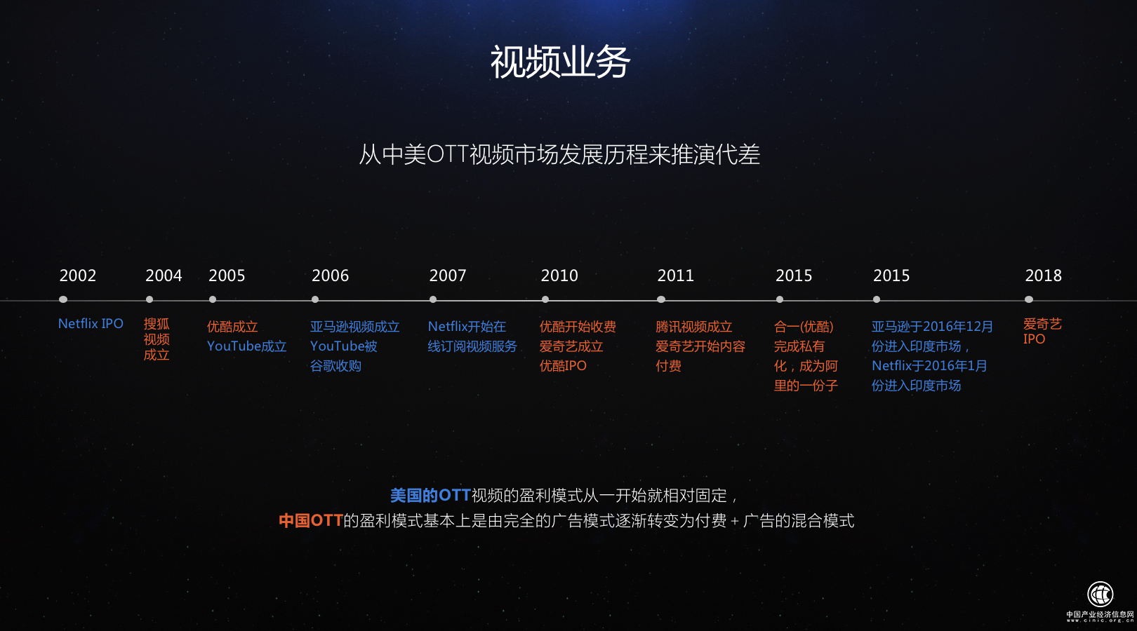 把中国、美国三家最大的视频方发展的历程推演可以看出,美国的三家公司:Netflix、亚马逊、YouTube、Netflix是从录像带租赁起家的,模式开始相对比较固定,就是付费。