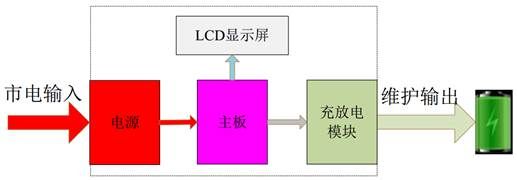 设备在此阶级首先自检内部功能,完成后再检测外接电池状态,设备根据参数工作模式, 进入充电或放电模式。若设备无故障进入工作阶段,否则进入故障阶段。