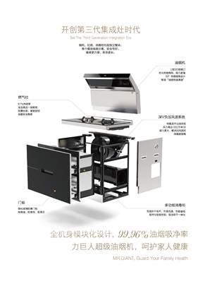 自古以来,厨房的油烟问题一直是困扰人们享受家庭生活的一个大问题,特别是有意打造开放式厨房的家庭。基于这样的原因,力巨人集成灶在设计过程中实现了全机身模块化,由此也开启了国内第三代集成灶时代。与市场上的集成灶产品相比,力巨人通过模块化设计融入完全独立的深V虹吸负压风道,形成强劲的下排吸力,排烟更顺畅,油烟吸净率高达99.96%,
