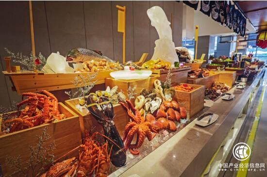 新煮意西餐厅新颖宽敞的全开放式厨房设计,与用餐空间形成互动趣味。“即点即烹”的形式,让宾客近距离观赏食材经历星级大厨高超精湛的烹制后,成为色香味俱全的诱人菜肴。在这里,宾客能穿梭在琳琅满目的各国美食中,体验一场汇聚世界美食精粹的盛宴。