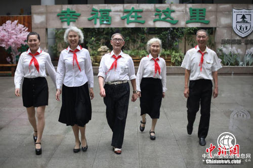 今天是六一儿童节,网上近2天的一段热点:五位平均年龄73岁的南京老人穿上白衬衣、戴上红领巾,走进小学校园,在"六一"节到来之际拍摄公益大片。据了解,此次活动目的是呼吁更多年轻人关注身边的老人,同时引发了很多人对于校园的幸福感受。