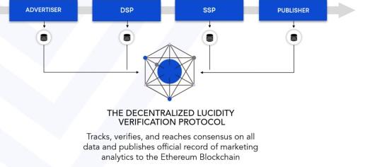 近期,Lucidity正尝试利用区块链技术为这一问题提出解决方案。Lucidity CEO Sam Kim告诉星球日报,Lucidity基于以太坊,开发了一个多方数据验证协议。程序化广告供应链上的广告主、DSP、SSP和出版商等参与方,都会接入同一个智能合约,每一次的广告活动(比如一次展示和点击),都需要各方达成共识(验证本次活动的真实性) ,如果某次活动没有达成共识,该次活动将会被视为无效。合约事先写好了分成方案,有效活动的费用会定时结算给各方。此外,原来广告主不知道自己的中间费用是多少也不知道分给了谁,Sam Kim表示,在Lucidity中,中间费用也将变得透明。