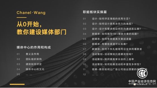 从一个媒体部门存在的作用和构成开始,细化到具体职能的实操技巧,也包括品牌建设过程中那些成功与挫折的经验,助力培训班到品牌学校的华丽变身。