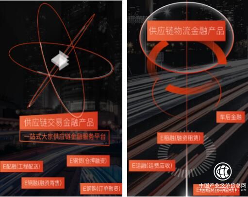 交易类金融产品,以E钢融为例:E钢融即融资寄售,是贸易商以一定账期的形式赊销货物给核心企业并签订购销合同,由此产生的应收账款做保理融资,到期由融资方或者核心企业偿还借款的一种融资方式。物流类金融产品,以E运融为例:E运融即运输业务、应收账款、提前变现,委托方委托承运商运输,产生的应收账款或承运商对委托方运输货物产生的应收账款,形成运费保理的融资方式。