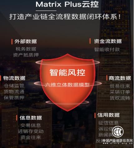 再次,风控模型数据多样化。通过自主研发“MatrixPlus云控”系统,逐步建立大宗供应链金融交易平台核心能力。“MatrixPlus云控”是平台基于大股东多年大宗商品贸易、供应链物流和供应链金融的产业资源优势,自主研发“MatrixPlus”产业链风控模型,建立多维度产业链场景的大数据智能风控系统。在具体数据收集处理方式上,做到业务数据化,数据标准化,采用线上与线下相结合,非标和标准相协同的组合模式实现全方位风控。同时研发团队充分利用区块链技术,让数据上链、让资产数字化,真正实现数字资产交易,最终实现全流程风险管控。